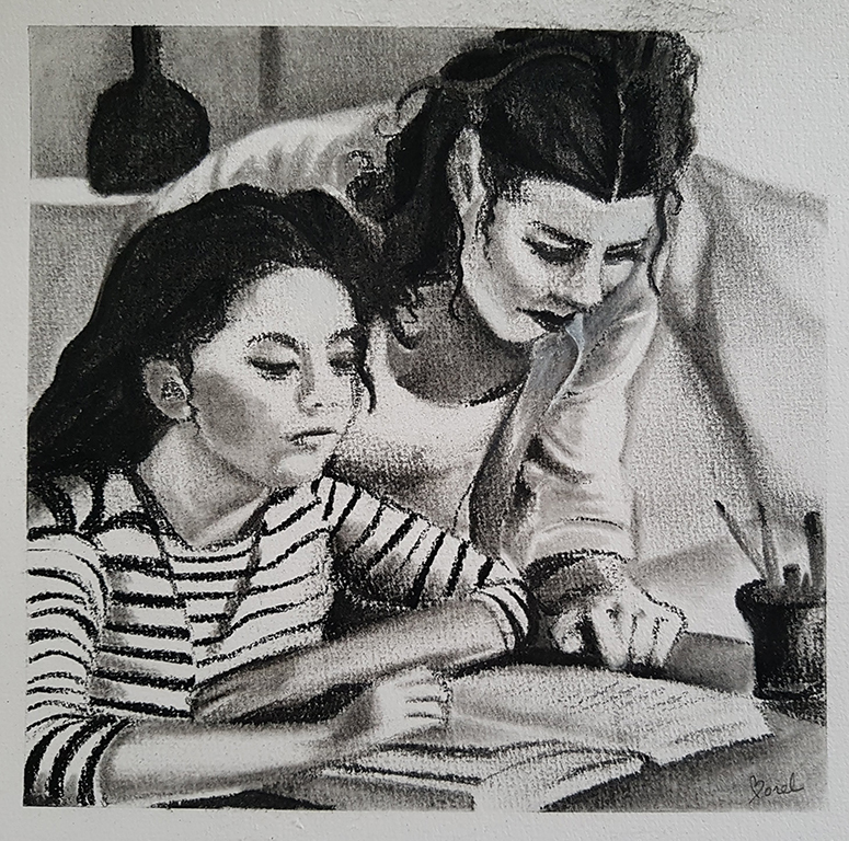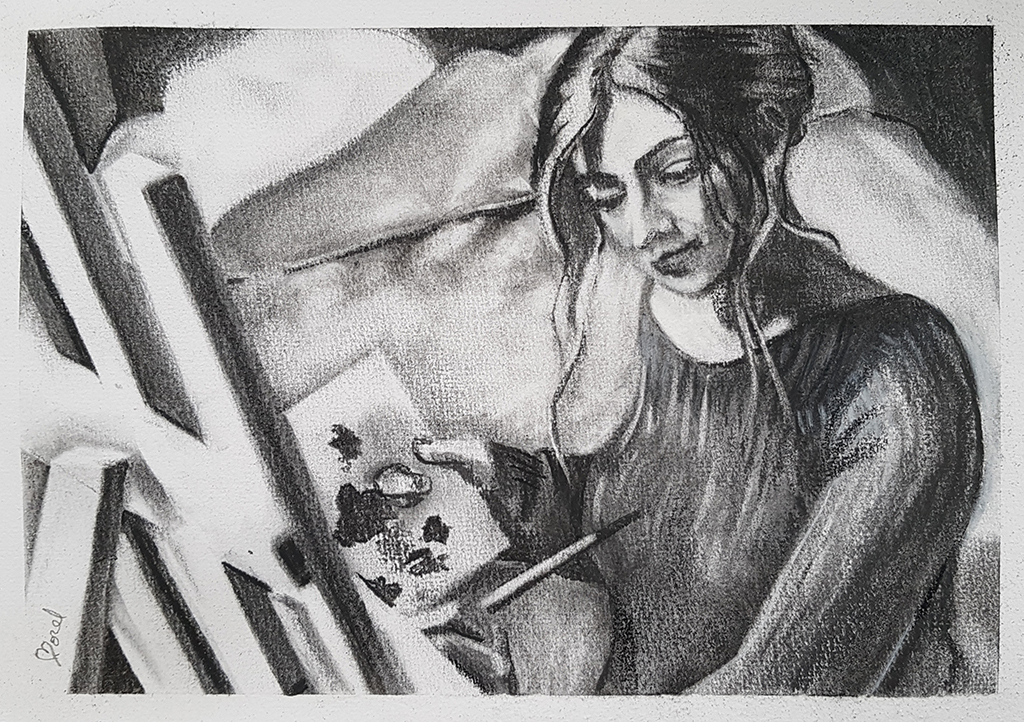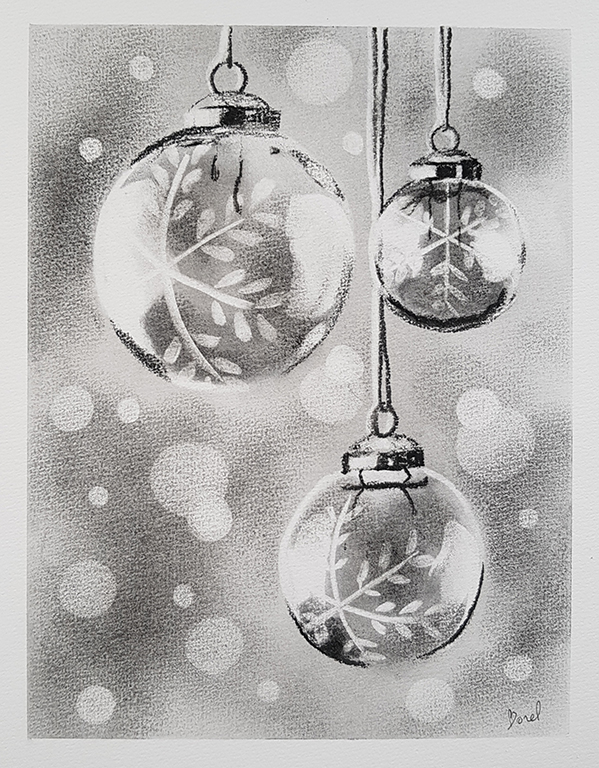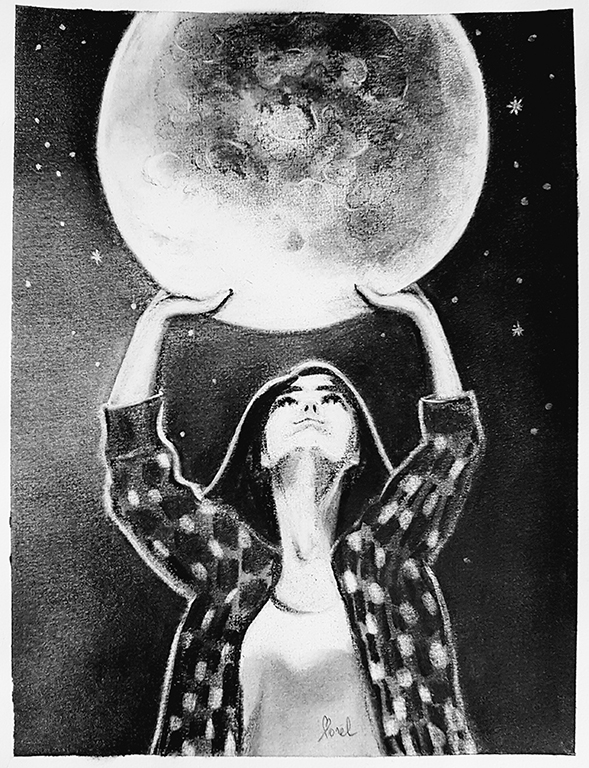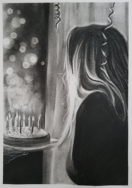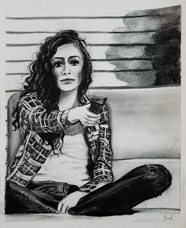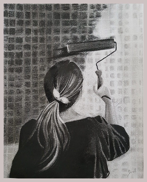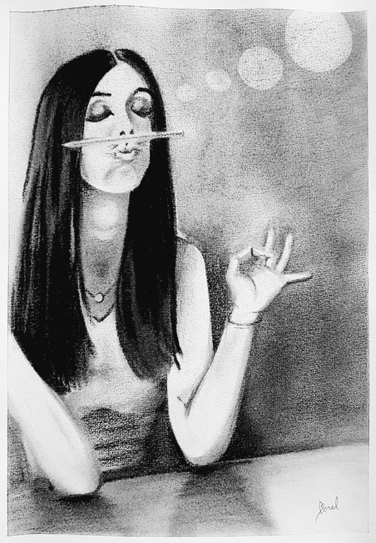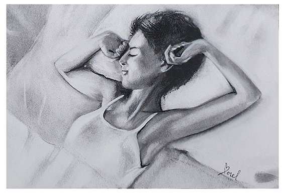 Ces dessins sont réalisés au fusain, une autre technique en noir et blanc que j’affectionne.